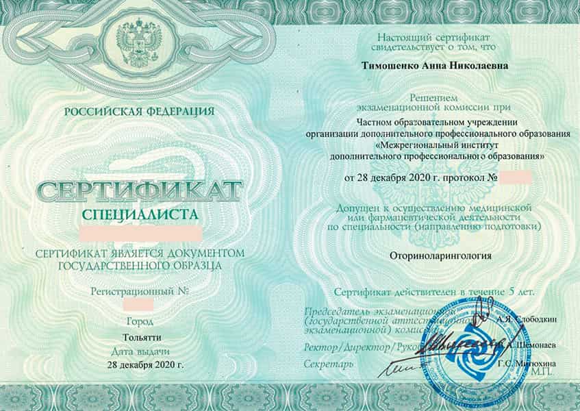 • 2020 г. Подтверждение сертификата об образовании (Межрегиональный институт дополнительного профессионального образования)
