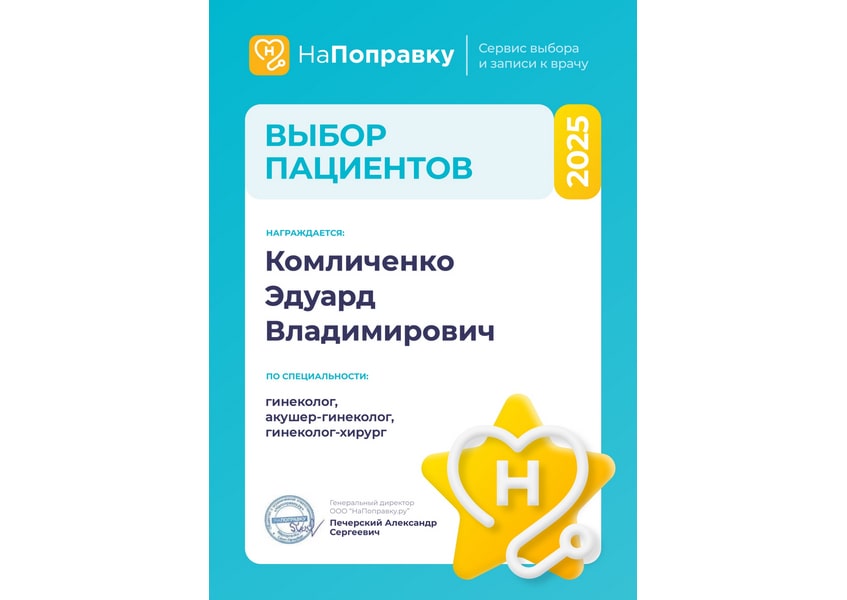 Действующие сертификаты: «Акушерство и гинекология», «Онкология», «Хирургия».