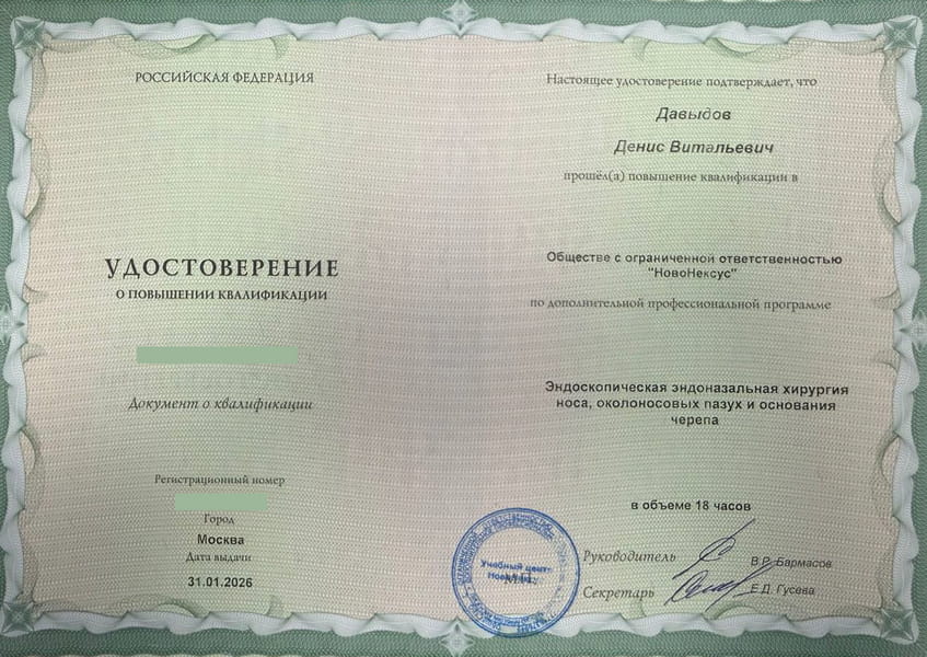 В 2019 г. - участник Международного курса по ринопластике для пластических хирургов. Всегда старается принимать участие в профильных семинарах и конференциях.
