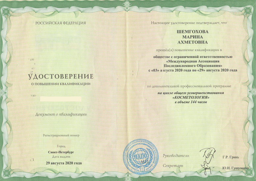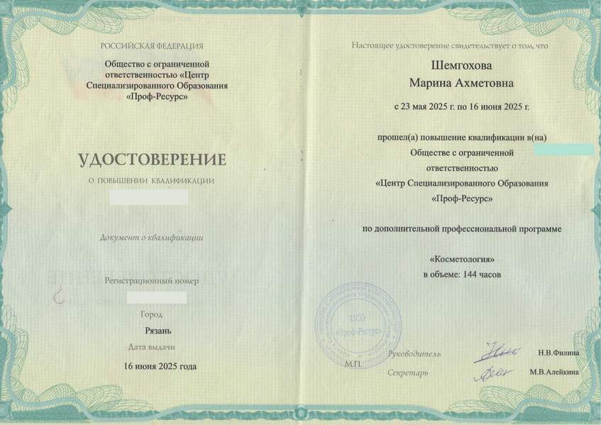 Врач-косметолог Шемгохова Марина Ахметовна специализируется на инъекционной и аппаратной косметологии.