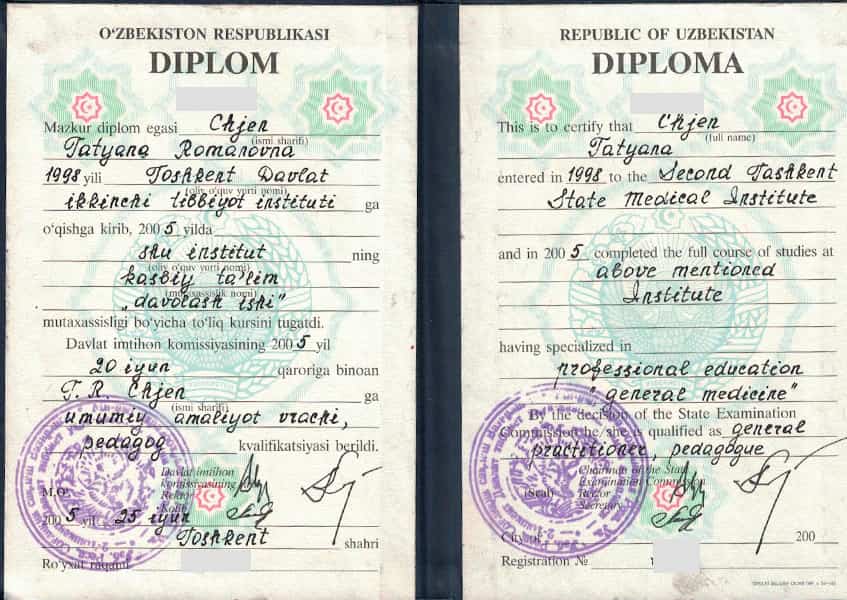 Чжен Татьяна Романовна окончила Второй Ташкентский государственный медицинский институт по специальности «Лечебное дело» в 2005 году. Там же прошла ординатуру по специальности « Эндокринология» в 2008 году.