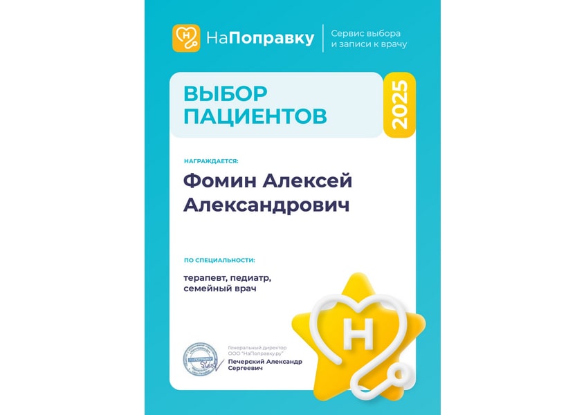 Фомин Алексей Александрович владеет широким спектром базовых знаний по всем направлениям медицины. Принимает пациентов эндокринологического профиля с сахарным диабетом, с заболеванием сердечно-сосудистой системы. К каждому находит индивидуальный подход, подробно отвечает на все вопросы во время приема.