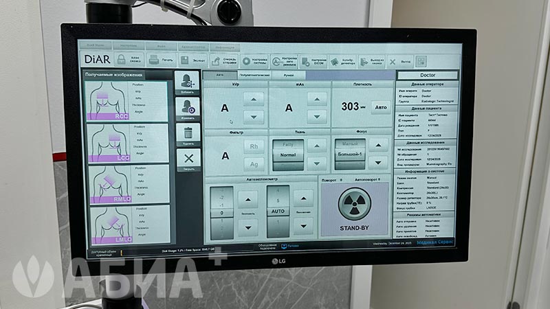 В клинике «АБИА» обследование проводится на экспертной цифровой маммографической системе DiAR-MAMMO 2025 года с применением технологии искусственного интеллекта. Это передовое оборудование сочетает инновационные технологии визуализации и цифровой постобработки снимков, благодаря которым врач получает изображения с максимальной детализацией и высокой чёткостью. Система позволяет обнаруживать мельчайшие структурные изменения и оценивать их с высокой точностью.