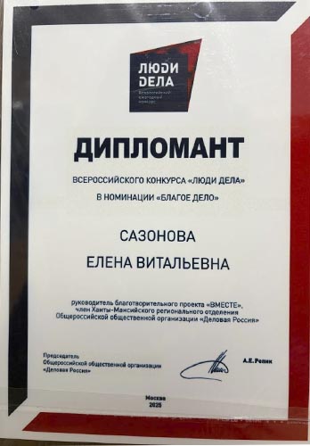 Благотворительный проект «ВМЕСТЕ», реализуемый пластическим хирургом Еленой Витальевной Сазоновой в клинике «АБИА», получил признание на всероссийском конкурсе «Люди дела», организованном «Деловой Россией». Проект был отмечен в числе инициатив, которые имеют реальное социальное значение и практический результат.
