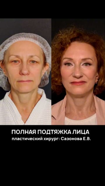 Результат комплексной подтяжки лица пациентки ведущего пластического хирурга Елены Витальевны Сазоновой.